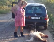 a kocsi mögött húzta a kutyát az állatkínzó asszony